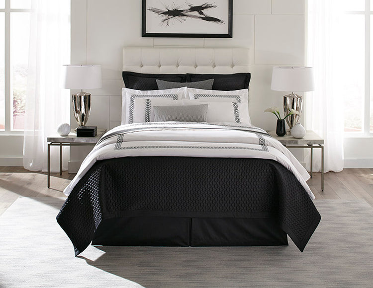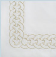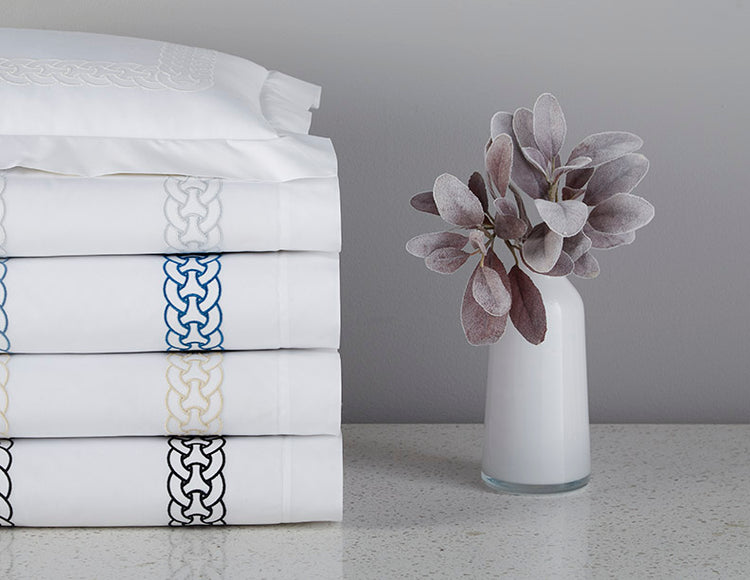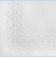 This bold and beautiful circular chain embroidery on our 500 thread count, Egyptian cotton, Italian percale, creates a distinctive look for a timeless bedding ensemble.